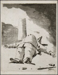 Tornato in Francia, il nostro Abate decide di incidere all’acquaforte e à lavis (una tecnica simile all’acquatinta) i disegni/appunti di viaggio presi da lui stesso e dai suoi compagni di Tour, che costituiscono la Recueil de griffonis, de vües, paysages…/ gravés tant à l’eau forte qu’au lavis par M. l’abbé de Saint-Non… d’après différents maîtres des écoles italiennes et de l’école française, pubblicata presumibilmente nel 1778. All’interno di questa eterogenea raccolta compare come tav. 91 il Pulcinella sdraiato. Questa pubblicazione anticipa di poco l’altra sua più famosa e monumentale che è Voyage pittoresque ou Description des Royaumes de Naples et de Sicile, pubblicata nel 1781-1786 in ben 4 tomi, uno dei più importanti libri di viaggio di tutto il Settecento, di cui è curatore e mente ideativa. Il tour, voluto dall’Abate, viene capitanato e organizzato nel 1777/78 dal Barone Dominique Vivant Denon, a capo del gruppetto di disegnatori e incisori sguinzagliati in giro per il sud d’Italia; a lui dobbiamo il testo originale che doveva accompagnare le magnifiche e pittoresche illustrazioni. Le due raccolte di incisioni devono avere avuto un certo successo, perchè vengono stampate anche negli anni successivi; della Recueil de Griffonis sono conosciute 7 ristampe successive fino al 1805-1810. Sembrerebbe una storia a lieto fine, questa dell’Abate che voleva fare l’artista e alla fine riesce a seguire la propria vocazione. In realtà le spese per queste due accurate e costose pubblicazioni, stampate in proprio, dissanguano le sue finanze; e la Rivoluzione qualche anno dopo lo priverà anche delle risorse della sua Abbazia, tanto che morirà in povertà nel 1791.