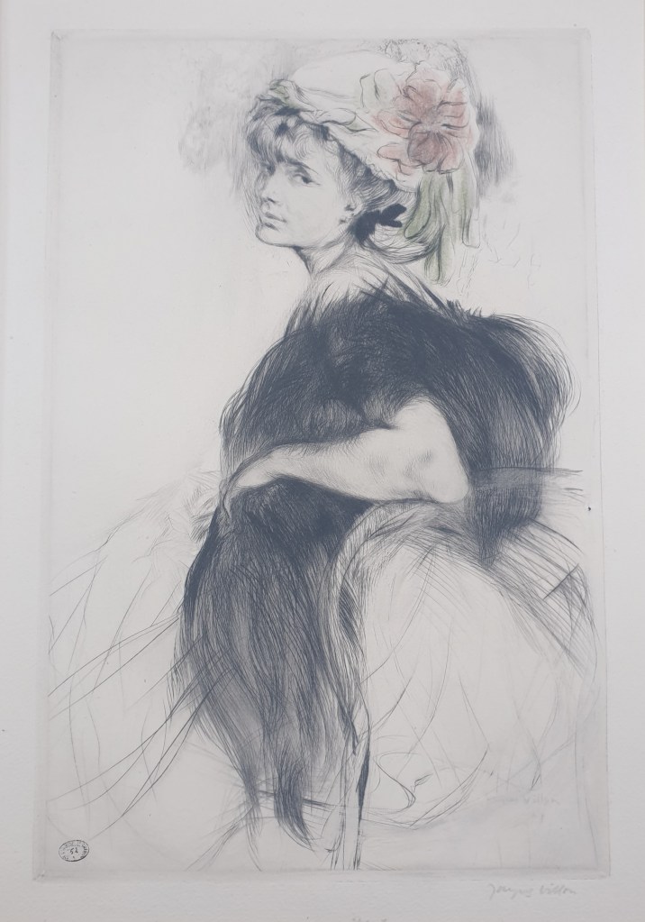 Piccola nota per i collezionisti: ogni lastra dell’edizione Bernheim-Jeune è stata tirata in 200 copie, ognuna firmata da Villon e talvolta anche dall’autore dell’opera originale. Sul mercato questi fogli hanno un grande valore, spesso superiore ai 1000/2000 euro, anche in base alla fama e alla riconoscibilità dell’opera riprodotta. Le lastre originali sono arrivate successivamente alla Chalcographie du Louvre, che le conserva tutt’ora e che ha provveduto a ristamparle: non sono riuscita a scoprire quando, quali e in che numero di copie. Sono però ben riconoscibili rispetto a quelle della tiratura originale perché non sono numerate né firmate; in basso compare la scritta incisa in lastra CHALCOGRAPHIE DU LOUVRE – JACQUES VILLON SCULPSIT. Ovviamente il loro valore di mercato è molto, molto più basso.