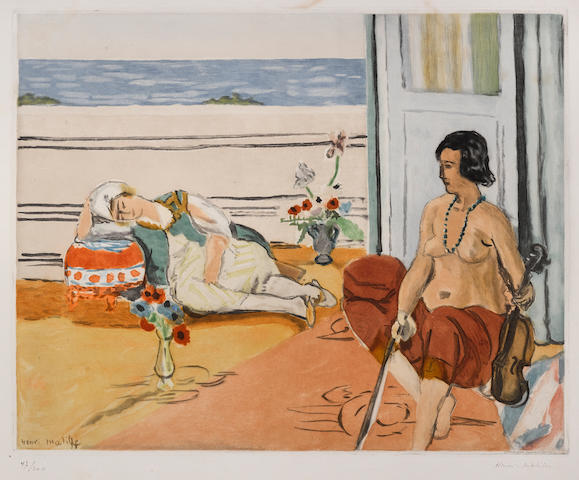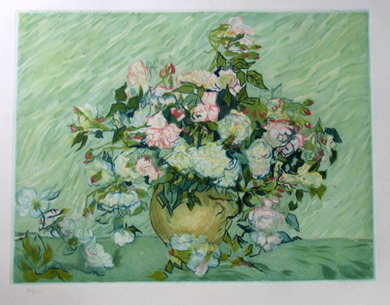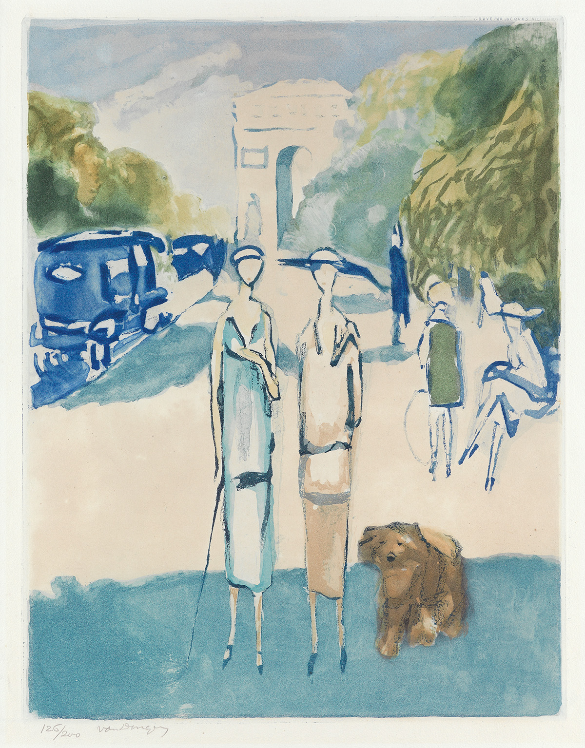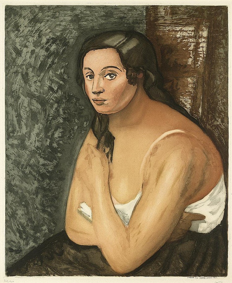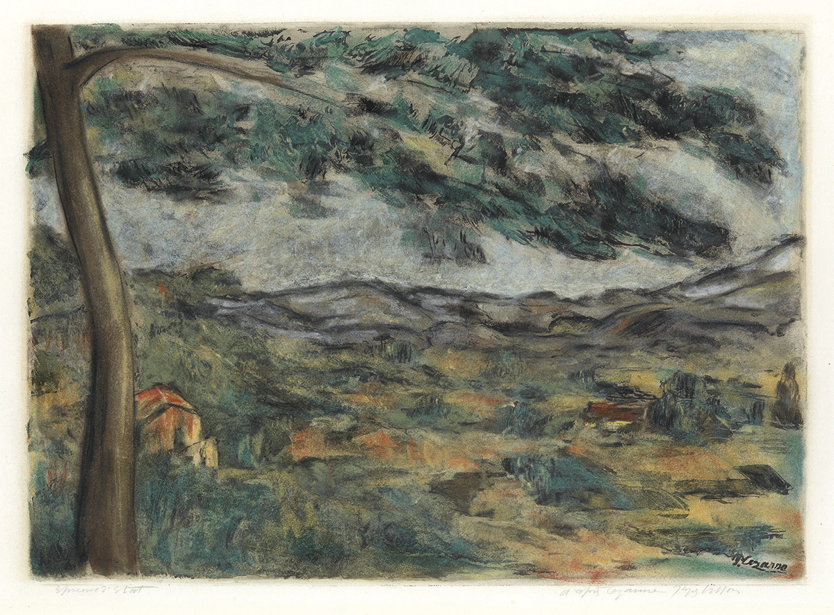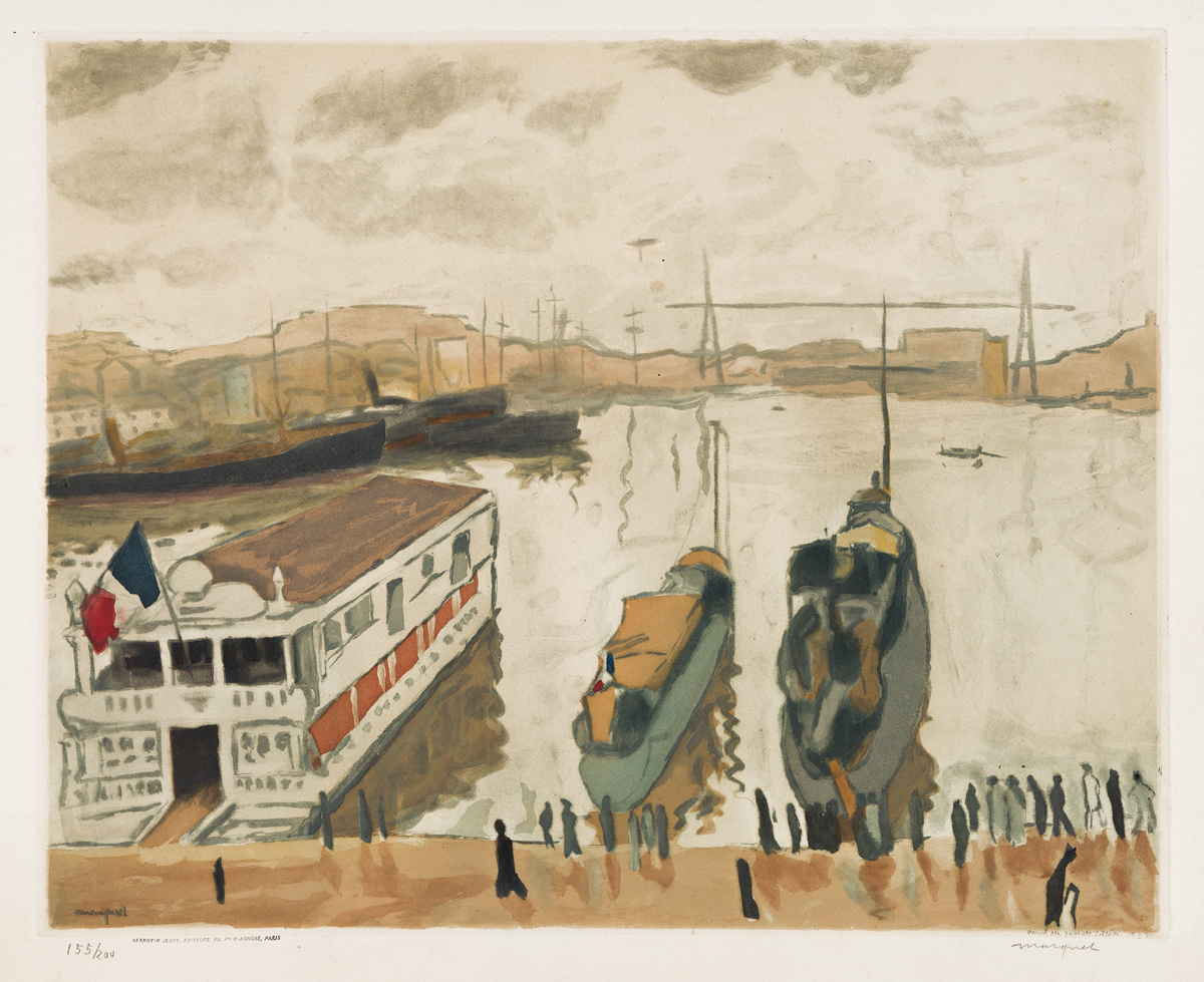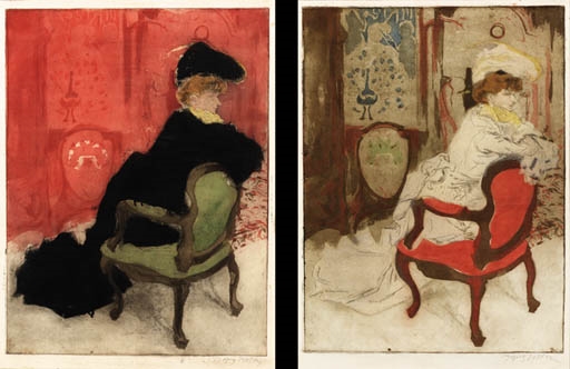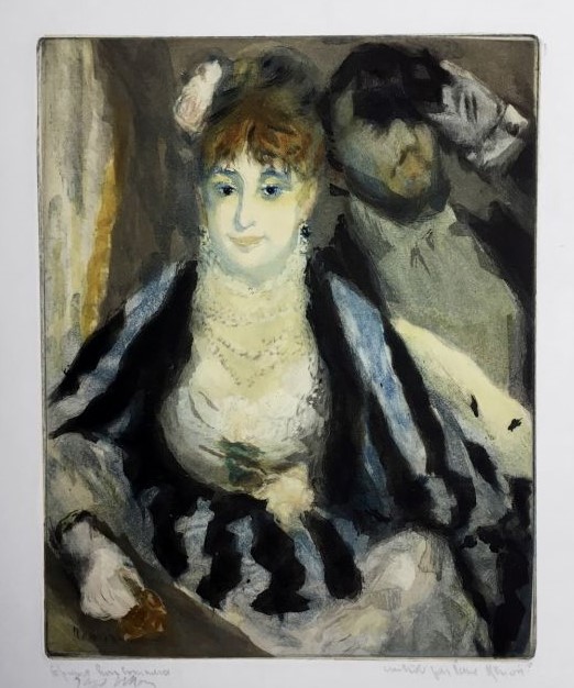 Dopo la guerra la situazione economica di Villon diventa più traballante: nel 1921 deciderà quindi di accettare un insolito incarico che lo vedrà impegnato fino al 1934: la prestigiosa Galleria Bernheim-Jeune di Parigi, famosa per aver ospitato dalla sua fondazione nel 1863 tutta l’arte controcorrente (dalla scuola di Barbizon agli Impressionisti, i Post-impressionisti e le Avanguardie, nonché nel 1901 la prima grande retrospettiva di Vincent van Gogh e nel 1912 la prima mostra dei Futuristi), gli chiede di riprodurre/interpretare con l’acquatinta alcuni dipinti dei più famosi artisti esposti nella galleria nella sua lunga storia commerciale. La tecnica dell’acquatinta a colori, che aveva abbandonato dal 1912 ma nella quale era considerato un maestro, gli torna dunque utile in un periodo di ristrettezze economiche. Si tratta di traduzione, certo, ma il processo è quasi un dialogo/riflessione sulle opere di questi grandi artisti. Realizzerà in tutto 45 lastre, che dal punto di vista tecnico sono dei capolavori. Queste sono solo quelle che sono riuscita a trovare in rete, disposte secondo l’ordine alfabetico degli autori dell’originale: Bonnard, Braque, Cézanne, Derain, M.Duchamp, Dufy, Gromaire, Laurencin, Légér, Luce, Manet, Marquet, Matisse, Metzinger, Modigliani, Picasso, Renoir, Rousseau il Doganiere, Signac, Utrillo, Vallotton, Van Dongen, Van Gogh, Vlaminck.