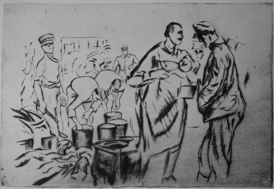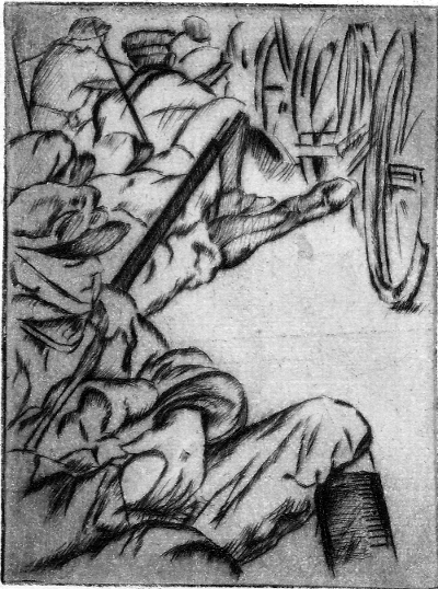 Anselmo Bucci – En tranchée ouverte – 1915-1916 – puntasecca sa carta vergellata – mm 124×84 – esemplare 14/100 – da Croquis du front italien, editore D’Alignan, Paris, 1917